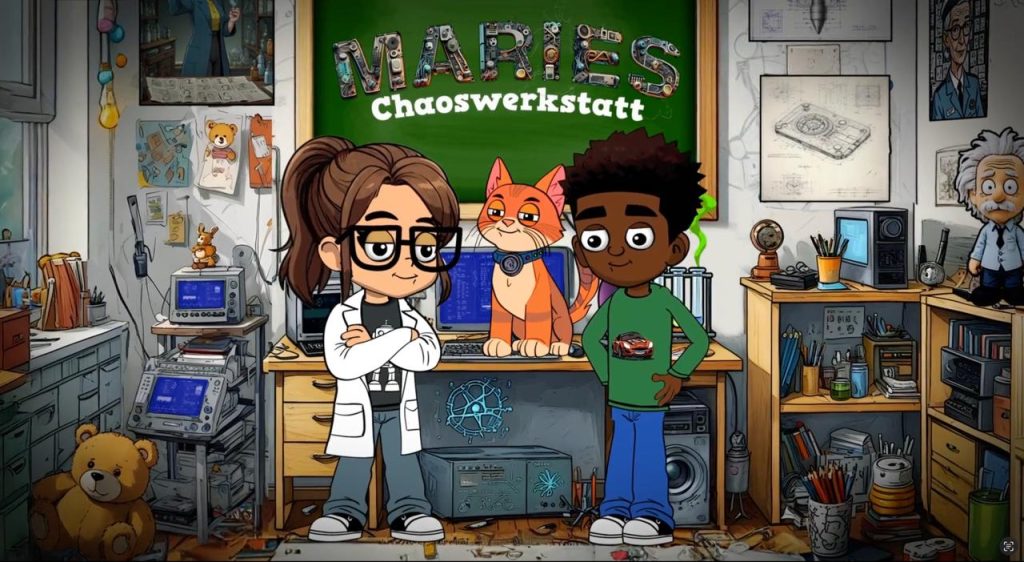 Auch bei dem Projekt “Maries Chaoswerkstatt” dreht es sich um eine Animationsserie. Aber diese richtet sich an Kinder bis 12 Jahre. Marie ist ebenfalls 12 und ganz schön schlau. Zusammen mit ihren Freunden Serge und ihrer Katze Lampe begibt sie sich auf allerhand Abenteuer. Manchmal schrumpft sie sich, um Kontakt mit den Bienen aus dem Garten aufzunehmen, oder reist zum einsamsten Planeten im Universum, Pluto, damit er nicht so alleine ist.